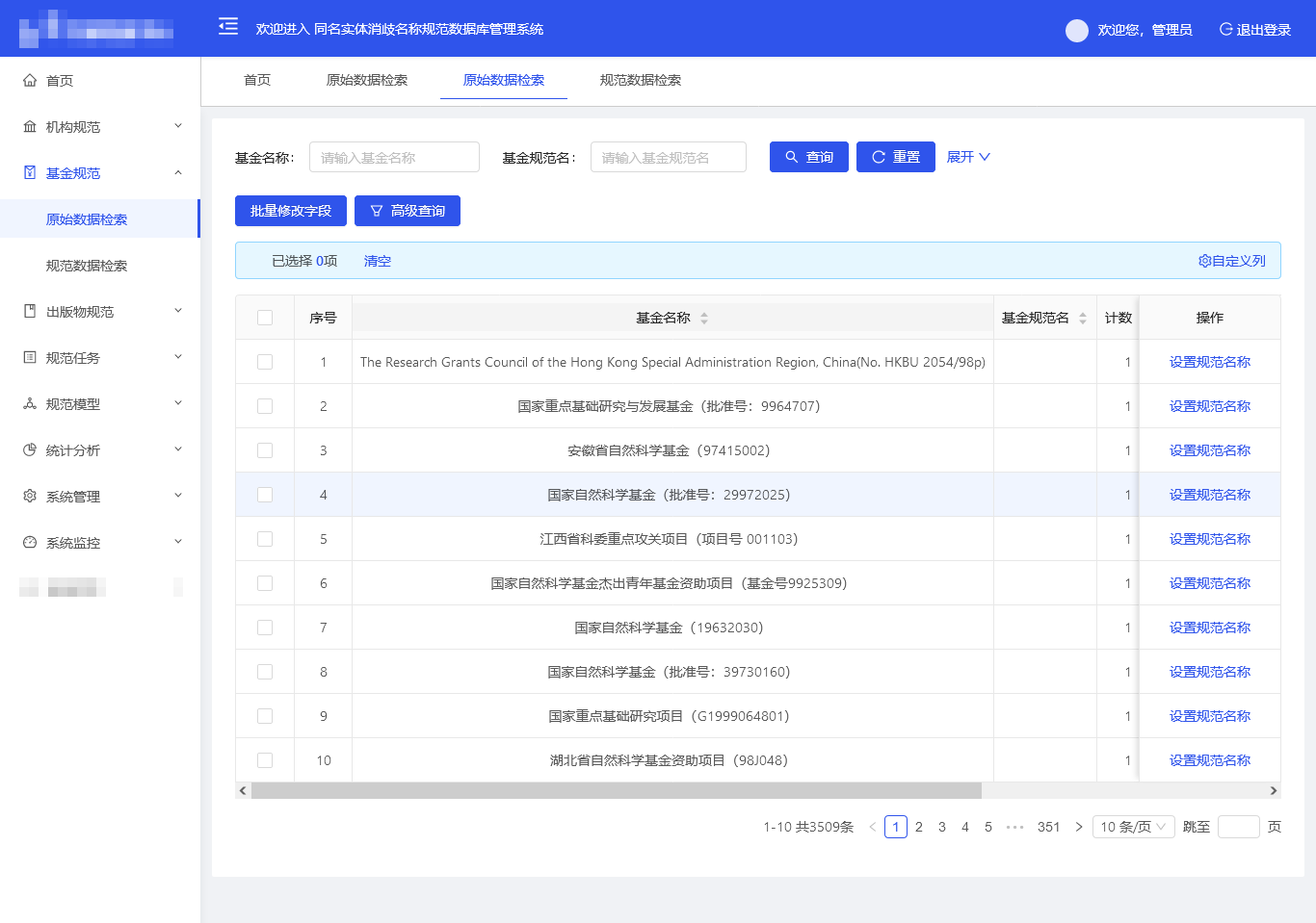 解決元數據中機構名、出版物名、主題、人名和地名等不規范、不統一的問題,建立邏輯清晰的層級關系和規范關系,將自動化處理算法融入到規范處理流程中,引入人工干預手段提高規范處理的準確率,對外以服務形式提供規范名的單一或批量轉換。